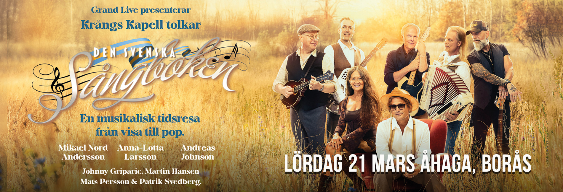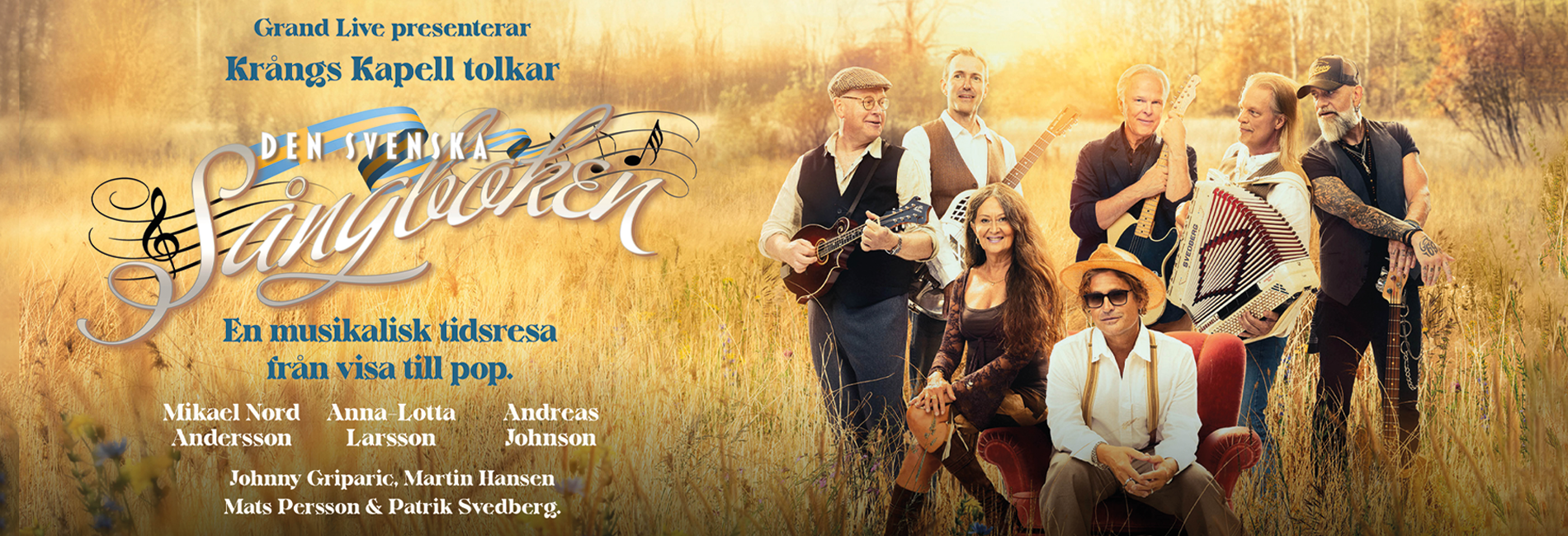 De har bland annat arrangerat Scorpions världsberömda MTV Unplugged-show i Aten, skapat musik till soundtracket för Spiderman II och producerat Björn Skifs odödliga klassiker "Håll Mitt Hjärta”. Producentduon Mikael Nord Andersson och Martin Hansen har under många år satt avtryck på både den svenska och internationella musikscenen. Nu är de tillbaka - denna gång som producenter för Den Svenska Sångboken. Men duon nöjer sig inte där. I samband med turnén presenterar de även sitt nya band, Krångs Kapell, bestående av några av landets mest meriterade musiker. Tillsammans med artisterna Anna-Lotta Larsson och Andreas Johnson bjuder de publiken på en oförglömlig musikalisk resa genom den svenska musikhistorien.
