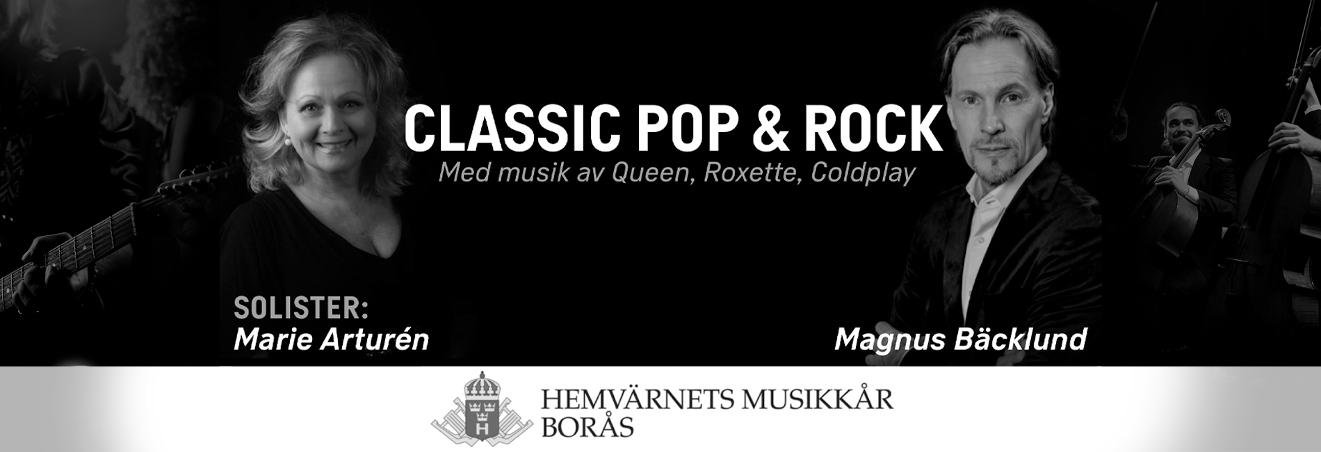 Sångarna Marie Arturen och Magnus Bäcklund gästar Hemvärnets musikkår i Borås med ett program med musik av Coldplay, Queen, Roxette, Björn & Benny, Fame och Skifs, allt uppbackat av musikkårens 40 musiker och med dirigent Roger Carlsson. En riktig nostalgitripp utlovas!