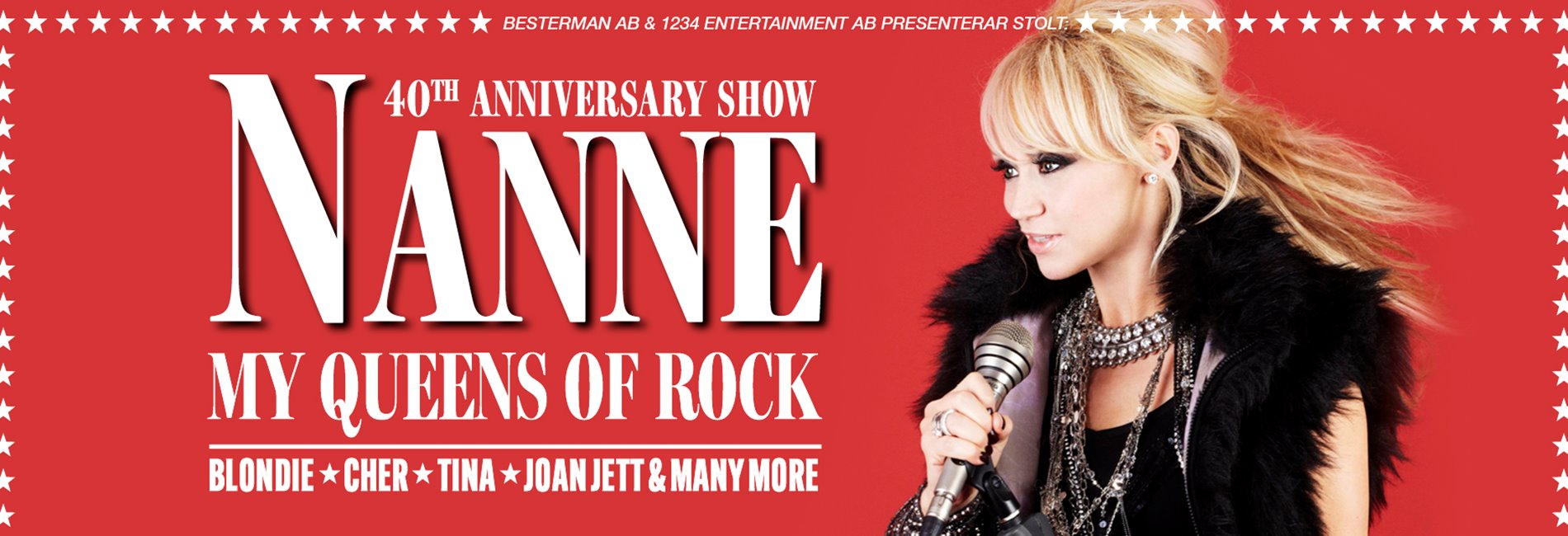 I jubileumsshowen My Queens of Rock firar Nanne 40 år som artist. Karriären började i Melodifestivalen 1986 med bandet Sound of Music och har fortsatt genom åren med hits som Håll om mig och Avundsjuk, (som soloartist), Den vilda och Highland (med One More Time), Det vackraste(som kompositör) och många andra älskade låtar.