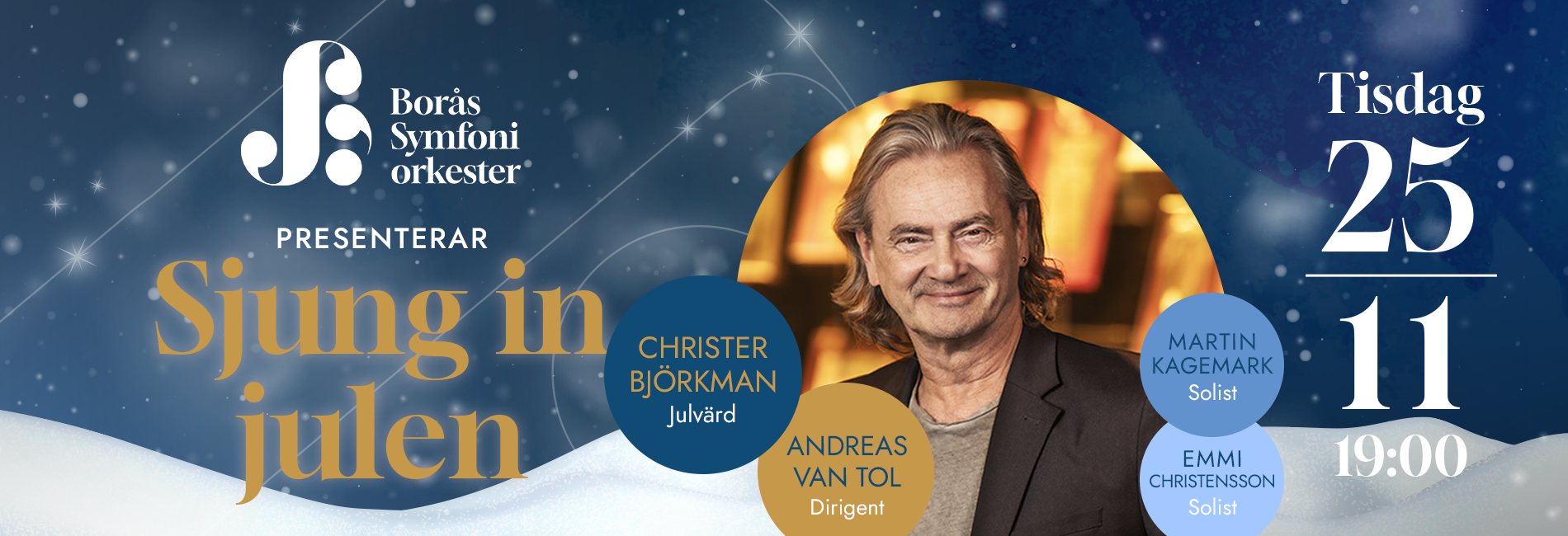 Kvällens julvärd Christer Björkman bjuder tillsammans med Martin Kagemark, solist, kör och Borås Symfoniorkester på julens vackraste och mest stämningsfyllda verk. I några stycken bjuds även publiken in, så låt oss skapa härlig julkänsla tillsammans!